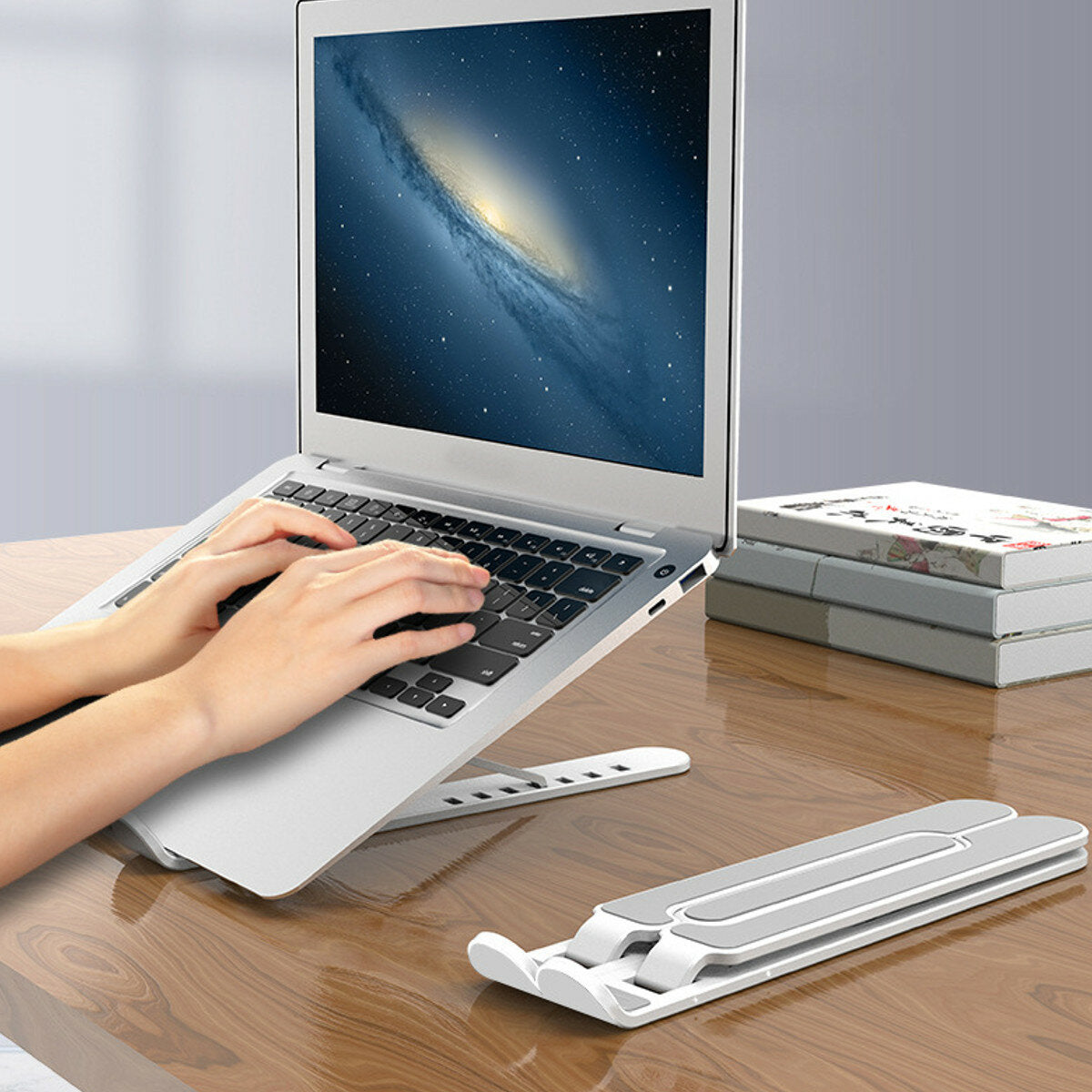 This portable laptop bracket with foldable technology is lightweight and easy to carry. It is built with aluminum. The surface of the bracket is covered with silicon protective stickers. It has an anti-slip function and provides strong stability so that your equipment will not slip easily.
