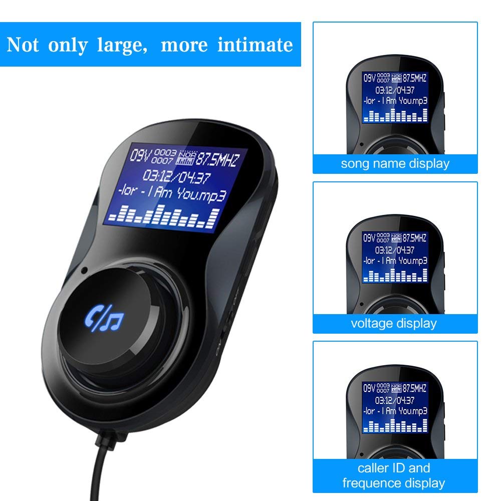 Super Clear Large Screen The 1.44 inches large screen will show incoming call number, voltage level in a car battery, volume, FM frequency and song name if you play music from TF card