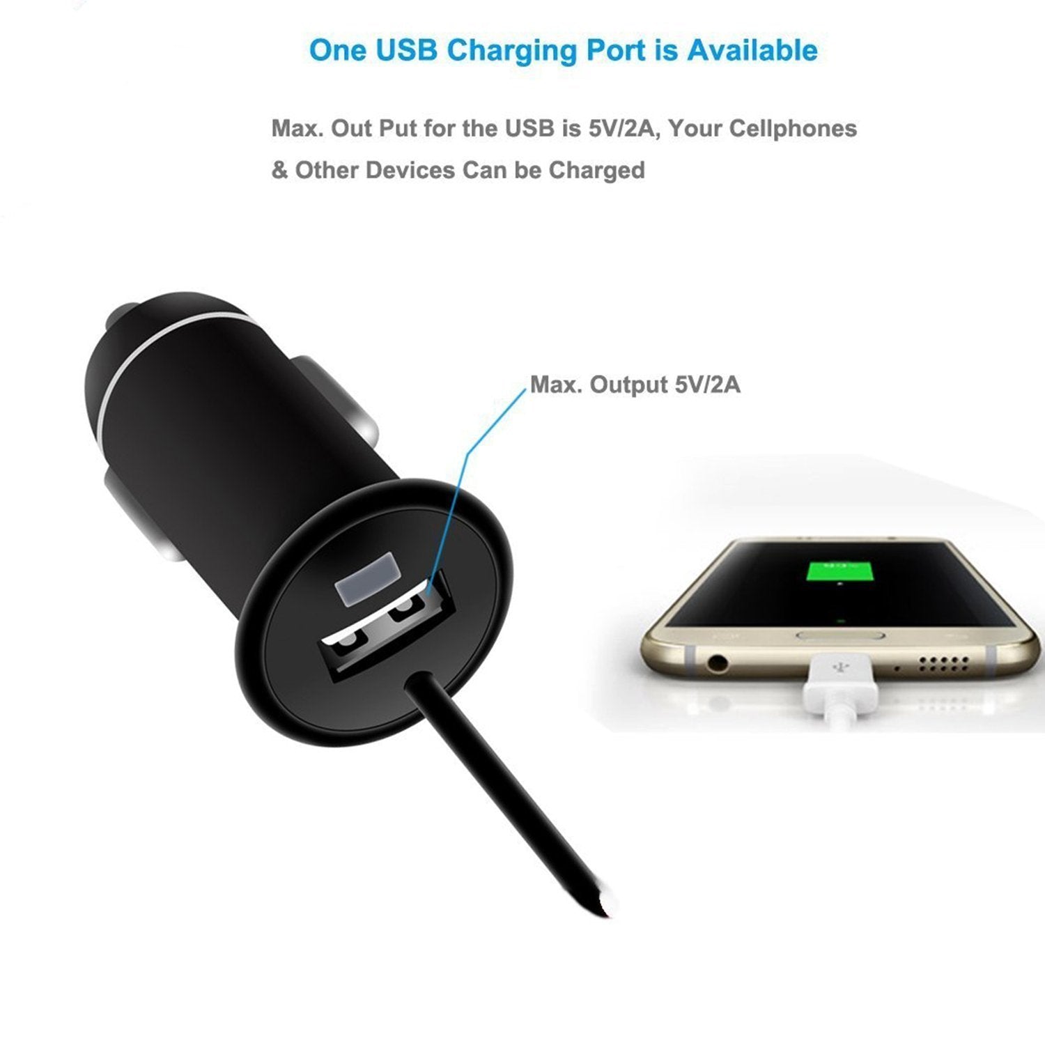 It features USB Charging port with output voltage of 5V DC 2A to charge your iPhone/iPad/tablet/and other smartphones when you enjoy your driving.