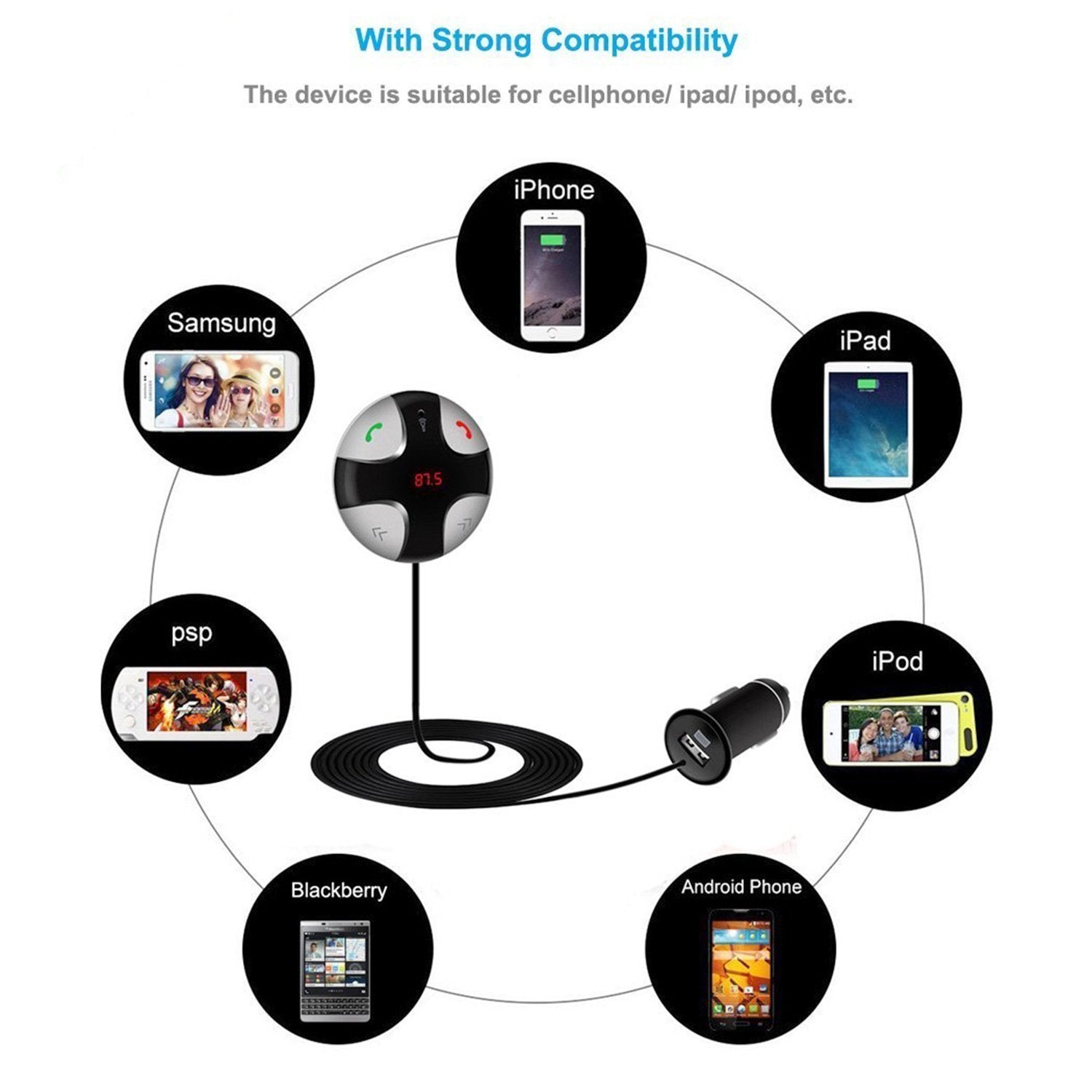 iSunnao Wireless FM Transmitter Bluetooth Car Kit gives you the ability to play your music from the FM empty channel in your car.